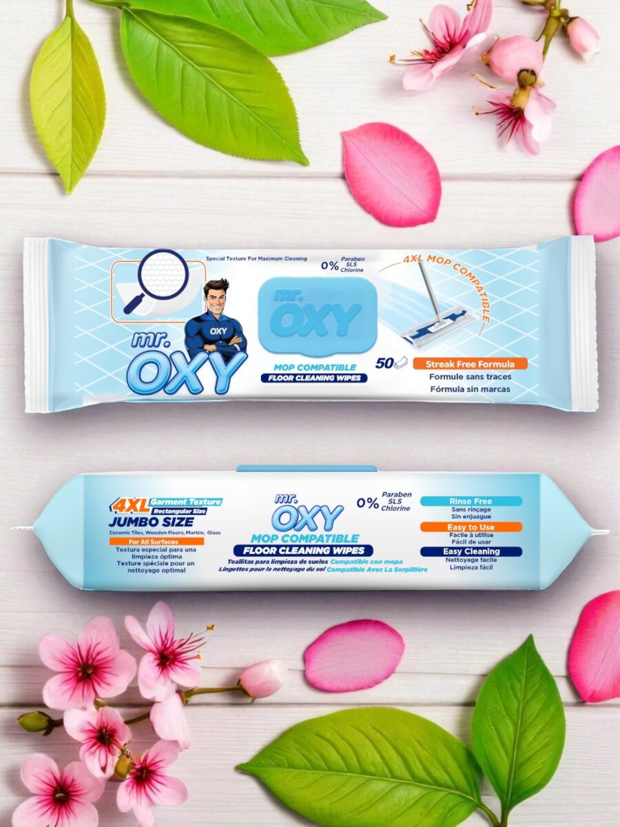mr. Oxy’s Mop-Compatible Floor Wipes are expertly designed for modern living — pre-moistened, ready to use, and perfectly sized to fit most flat mop systems. With one swipe, enjoy spotless, streak-free floors without fuss.